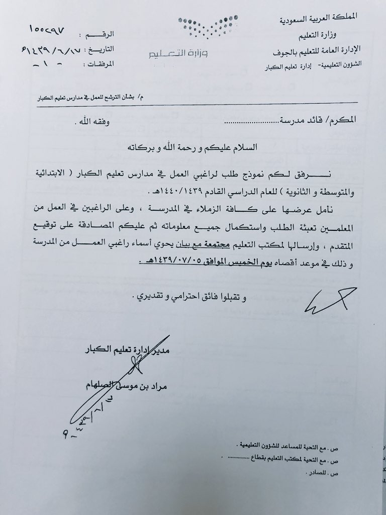 أعلنت الإدارة العامة للتعليم بجدة ممثلة في إدارة تعليم الكبار عن فتح باب الترشيح للعمل بمدارس تعليم الكبار لجميع المراحل للعام الدراسي 1439 1428هـ جاء ذلك في تعميم وزعته الإدارة على مكاتب التعليم والمدارس الحكومية. لا بد من تفعيل الجافا سكربت في متصفحك. مركز مركز تحميل تو عرب. منتدى الأخبار التعليمية القرارات التعليمية.