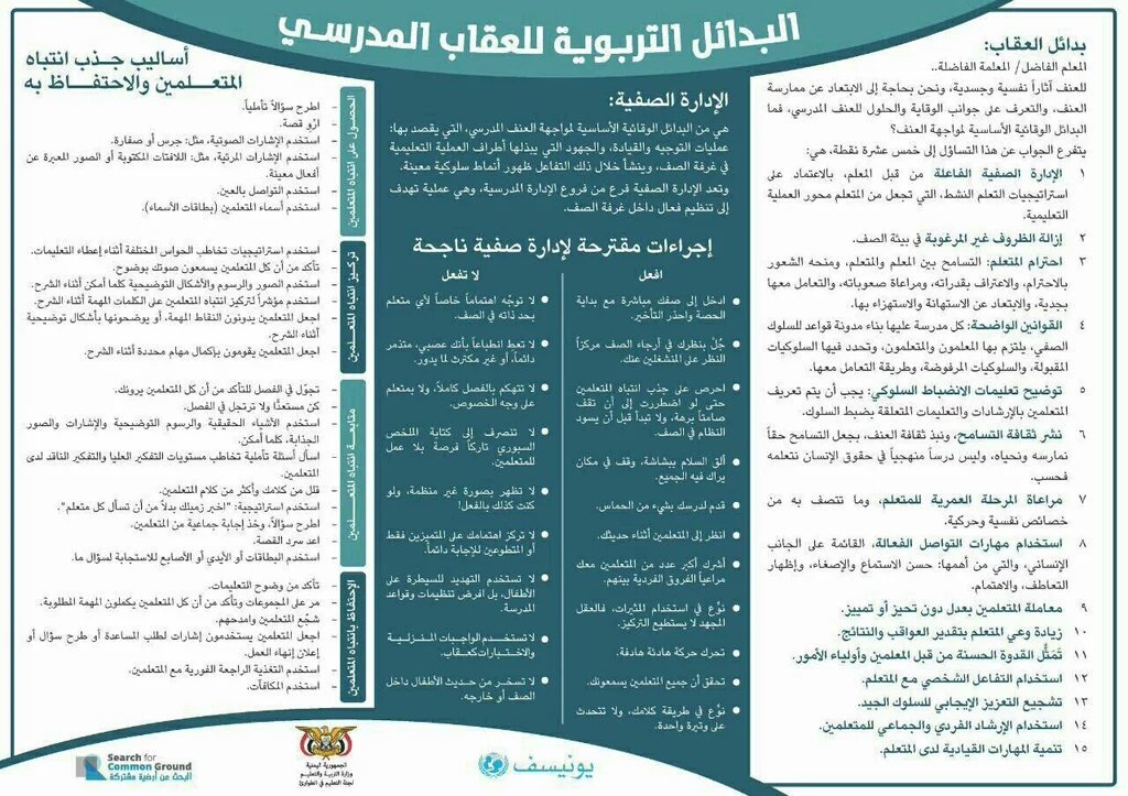 البدائل التربوية للعقاب البدني. يجعل العلاقة بين التلميذوالمعلم علاقة خوف يزيد من حد ة العناد والعدوانية لدى التلاميذ يلغي الحوار والمناقشة بين. وأكد إنزال البدائل التربوية للعقاب البدني واللفظي على أرض الواقع بإصدار قرار بمنعه في المدارس وتدريب المعلمين والقياديين واستخدام إذاعة مدينة ود مدني في نشر الوعي بأهمية التعزيز الإيجابي. استراتيجيات واساليب تعديل السلوك. البدائل التربوية للعقاب البدني.