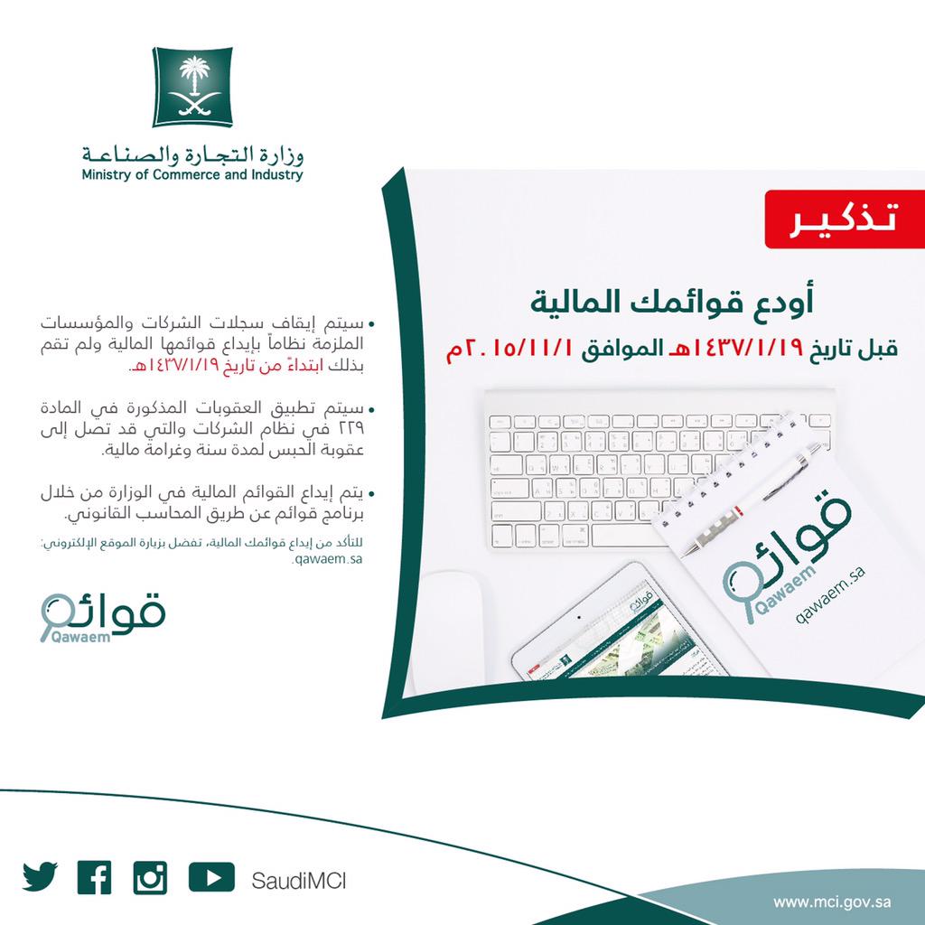 القوائم المالية وزارة التجارة. إلحاقا لما سبق أن أعلنت عنه وزارة التجارة والصناعة وهيئة السوق المالية بتاريخ 15 5 1437هـ الموافق 24 2 2016م في شأن مذكرة التعاون الموقعة بينهما بخصوص تطبيق نظام الشركات الجديد والتي تأتي سعيا من الوزارة والهيئة إلى. رابط قوائم وزارة التجارة تسجيل الدخول. أطلقت وزارة التجارة والصناعة منصة قوائم الإلكترونية التي سوف تخدم بشكل كبير القطاعين العام والخاص على حد سواء من خلال تعزيز الشفافية في السوق السعودي وخدمة المنشآت عن طريق تسهيل وتنظيم عملية إيداع القوائم المالية. خدمة إلكترونية تقدمها وزارة التجارة والاستثمار عن طريق برنامج قوائم تمكن المنشآت ومكاتب المراجعة من رفع قوائمها المالية وإرسالها عن طريق استخدام لغة اكس بي ار ال.