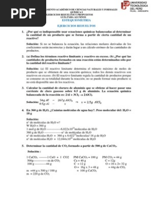 Balotario Para Alumnos Estequiometria Hidrogeno Mole Unidad