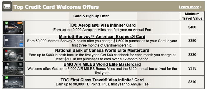Rewards Canada Top 5 Credit Card Sign Up Offers For November These Cards Provide Some Of The Best Value Out Of Their Welcome Bonuses