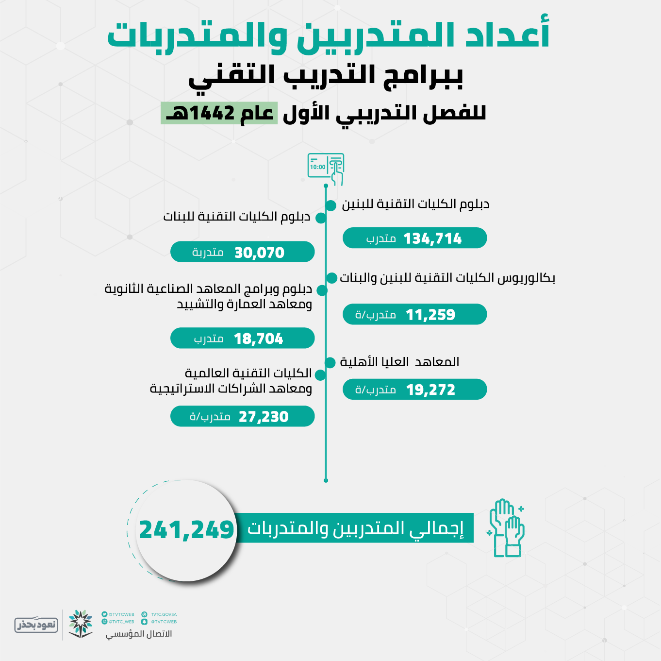 Tvtc شعار المؤسسة العامة للتدريب التقني والمهني png. وقعت المؤسسة العامة للتدريب التقني والمهني والمؤسسة العامة لتحلية المياه المالحة مذكرة تفاهم بهدف تفعيل سبل التعاون المشترك وتحقيق التكامل وتوحيد الجهود في مجال التطوير والتدريب. ترجع البدايات في التدريب التقني والمهني في المملكة العربية السعودية الى فترة زمنية مبكرة حيث ان كان موزع بين ثلاث جهات حكومية في ذالك الفترة حيث ان كان ليهم الثانوي. و هي شعار المملكة العربية السعودية و قد تم تصميمه بطريقة تناسب الرسالة المهنية و التقنية. نلاحظ أن شعار الكلية التقنية يتكون من.